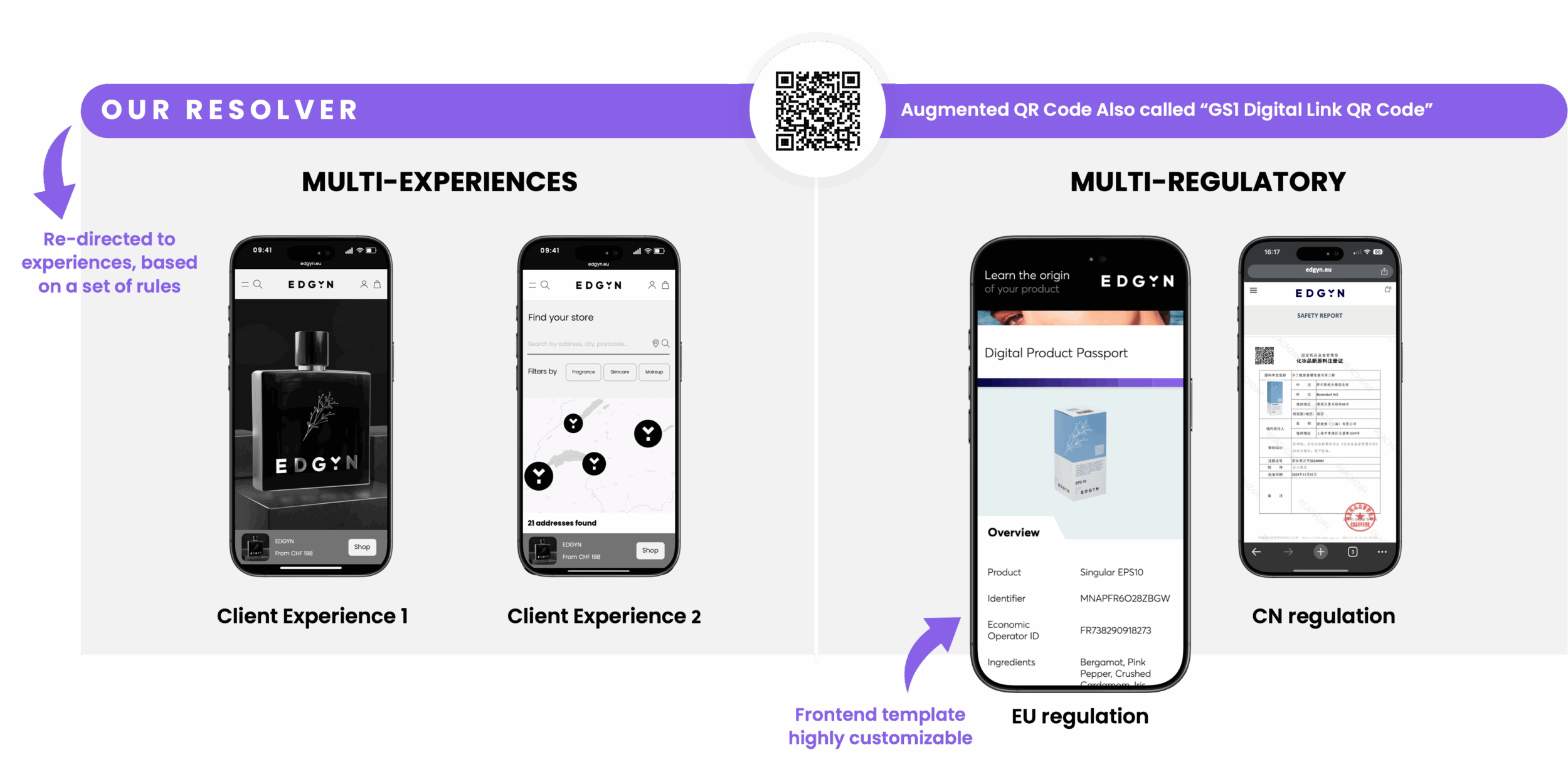 EDGYN’s resolver, combined with the Augmented QR Code, delivers a future-proof, all-in-one packaging solution for beauty brands. It eliminates the need for multiple codes and complex region-specific packaging designs.